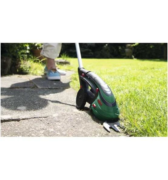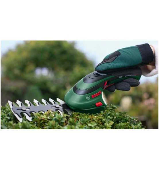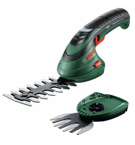 Akku-Strauch- und Grasscheren-Set Isio. Der unentbehrliche Helfer im Garten. Kompaktes Handwerkzeug, perfekt zum Formen von Büschen und Sträuchern. Leichtes und ergonomisches Design für Komfort und müheloses Schneiden. Langlebiger 3,6-V-Lithium-Ionen-Akku ist jederzeit einsatzbereit mit bis zu 50 Minuten Laufzeit. Leistungsstarker Antrieb und Anti-Blockier-System für eine nahezu blockierfreie Extra-Schnittleistung. Im Lieferumfang enthalten: Ladegerät, Multi-Click-Grasscherblatt 8 cm (F 016 800 326), Multi-Click-Strauchscherenmesser 12 cm (F 016 800 327)