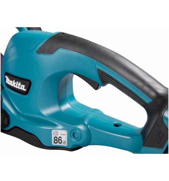 Die leichte Akku-Heckenschere DUH507 bringt inkl. einem BL1860B 6,0 Ah Akku 3,0 kg auf die Waage. Mit einem eingesetzten Akku ist diese optimal ausbalanciert und beugt dadurch auch bei langem Arbeiten Ermüdungserscheinungen vor. Die optimale Klingenform ermöglicht das Schneiden von Zweigen bis zu einer Dicke von 15,0 mm. Der Sicherheitsschalter im oberen Handgriff ist dank der verbesserten Bauform in jeder Lage, ohne große Anstrengung, festzuhalten.