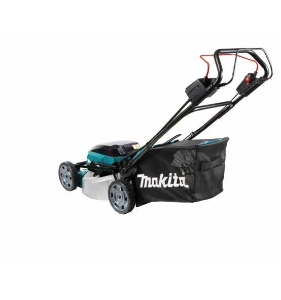 Geräuscharmer 2 x 18 V Akku-Rasenmäher mit robustem Stahldeck.