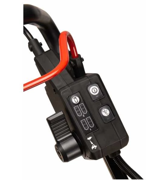 Er hat eine Schnittbreite von 46 cm und verfügt über eine Füllstandsanzeige im 60 Liter Grasfangkorb.