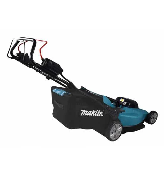 Geräuscharmer 2 x 18 V Akku-Rasenmäher für mittelgroße Rasenflächen. Der Radantrieb ist autark und ohne Mähwerk nutzbar. Faltbarer Führungsholm und dank des Akkus vertikal lagerbar, für ein kompaktes Staumaß. Füllstandsanzeige am 70 Liter Grasfangkorb. Mit Akku-Ladestandanzeige direkt am Führungsholm. 4 in 1: Mähen, Sammeln, Mulchen, Heckauswurf.