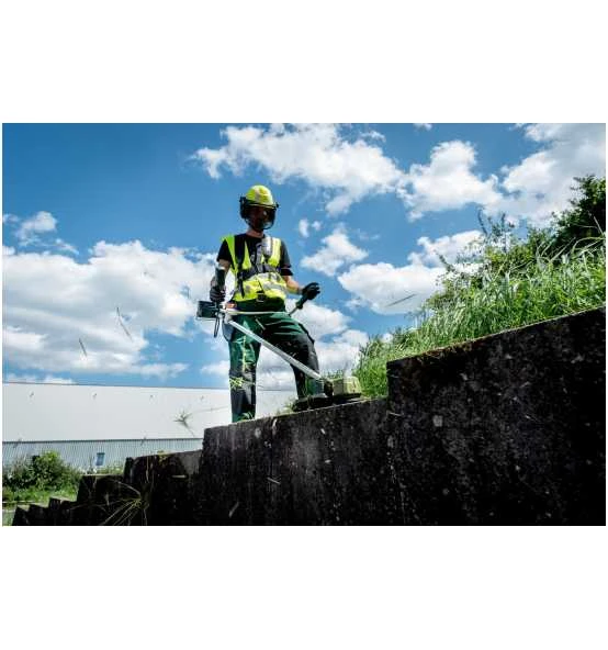 Leiser Akku-Freischneider mit verstellbarem Zweihandgriff zum komfortablen Arbeiten auf größeren Flächen